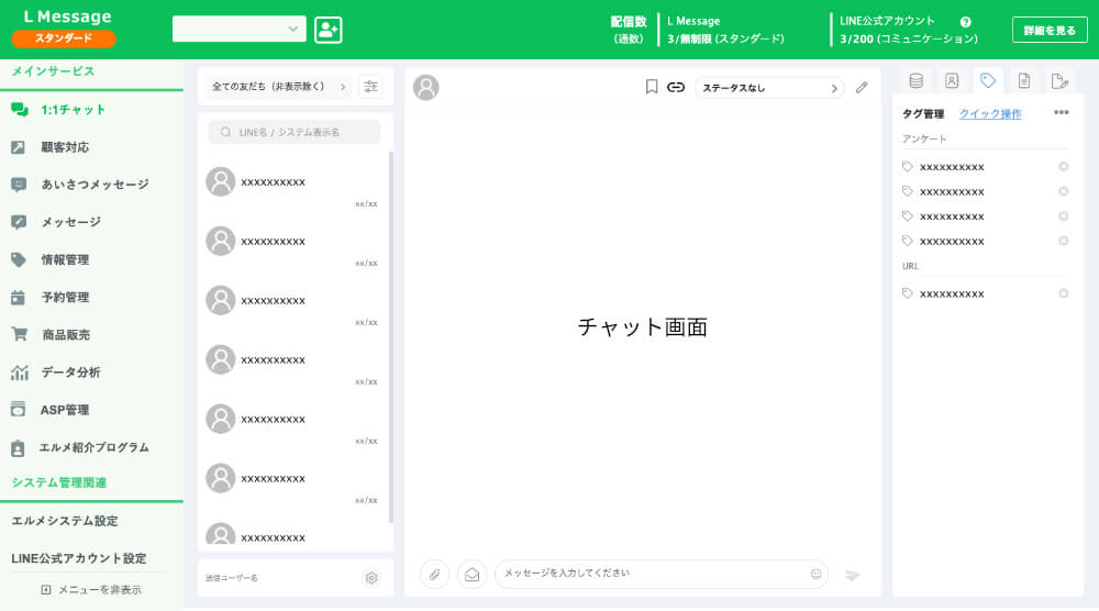 「エルメ(L Message)」は、LINE公式アカウントと連携できる拡張サービスです。