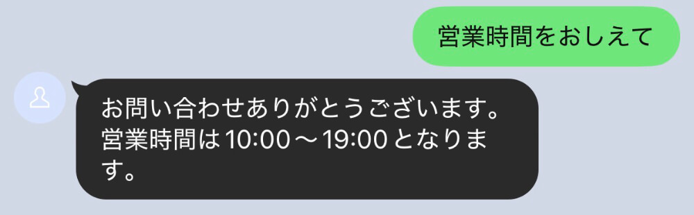 ユーザーから送られてきたメッセージに対して、あらかじめ管理画面で設定したテキストや画像、動画など自由に自動メッセージを送信することができます。
